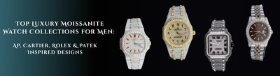 Moissanite Watch Collections for Men: AP, Cartier, Rolex & Pate